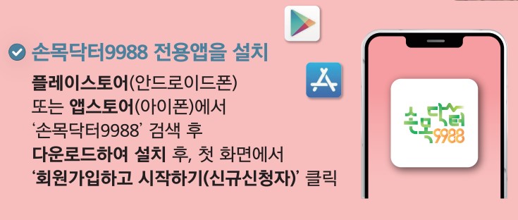 손목닥터9988 앱 : 안드로이드 - 플레이스토어 / IOS : 앱스토어